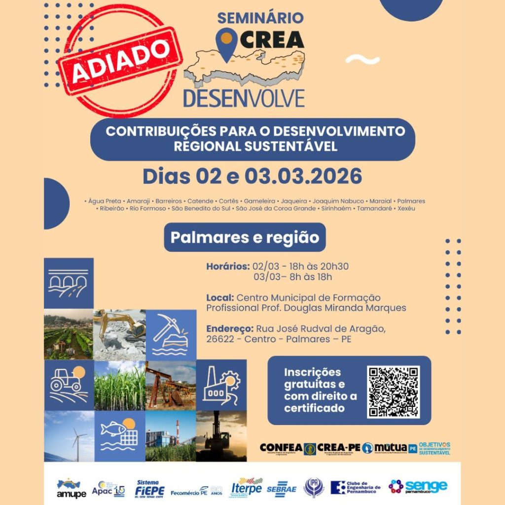 Seminário Crea Desenvolve Palmares e região é adiado por motivos técnicos