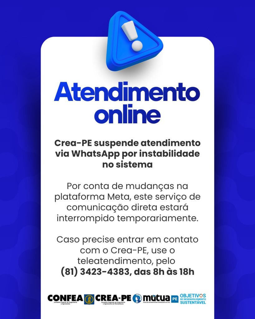 Por conta de mudanças na plataforma Meta, este serviço de comunicação direta foi interrompido temporariamente Por conta da instabilidade