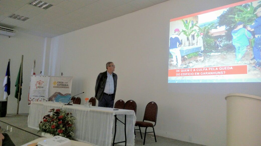 A edição iniciou com a abertura feita pelo presidente do Conselho, Evandro Alencar, através da palestra “Sistema CONFEA/CREA e Mútua”. Em seguida a palavra foi passada para o professor Mestre em engenharia civil e pesquisador do Instituto de Tecnologia de Pernambuco (ITEP), Carlos Wellington de Azevedo Sobrinho, que falou sobre “História, Casos de Ruína, Grau de Risco Potencial, Metodologia de Inspeção em Edifícios de Alvenaria Resistente (prédios caixão)”. Na ocasião ele explanou para os participantes os tipos de construções que possuem mais ameaças de desabamentos, apresentou a metodologia para elaboração de laudos técnicos e o quadro com diagnóstico dos prédios caixão, do menor ao maior risco. “Temos, atualmente, um alto percentual de prédios condenados no Estado”, afirmou.