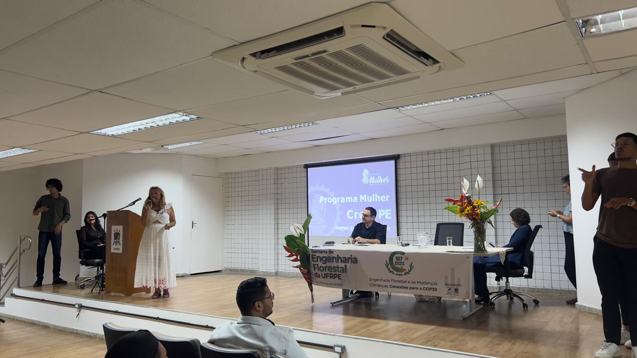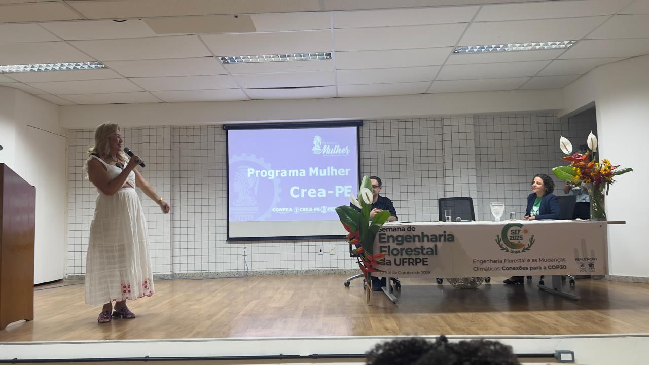 As ações do Programa Mulher do Crea-PE foram destaque na Semana da Engenharia Florestal (SEF) 2025 da Universidade Federal Rural de Pernambuco (UFRPE). A engenheira florestal e coordenadora-adjunta do Programa, Ana Lícia Patriota, foi uma das palestrantes do evento, realizado entre os dias 29 e 31 de outubro.
