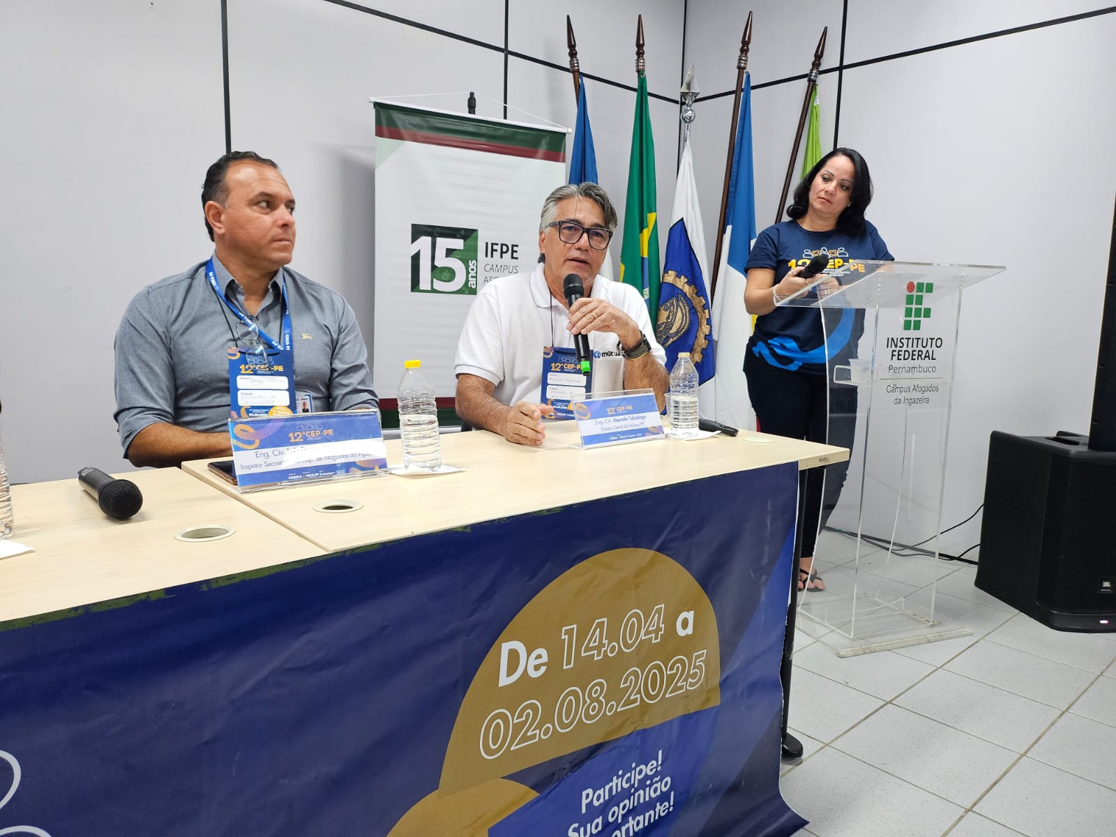 Os engenheiros civis Jailson Vieira e Imaculada Medeiros, além do engenheiro de pesca Gilmar Aguiar foram os delegados eleitos no encontro microrregional do 12º Congresso Estadual de Profissionais de Pernambuco (CEP-PE) realizado na noite desta segunda-feira (16), em Afogados da Ingazeira. Eles irão defender as propostas apresentadas e discutidas no encontro no 12º CEP-PE, que acontece no Recife, em 2 de agosto.