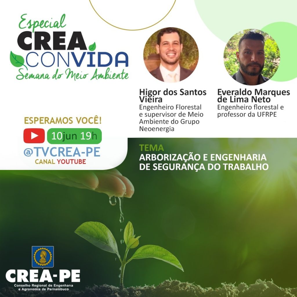 Encontro faz parte da programação da Semana Especial do Meio Ambiente e acontece às 19h, transmitido pelo TV Crea-PE, no YouTube A importância e os efeitos das podas de árvores serão os assuntos apresentados pelo engenheiro florestal e professor da UFRPE, Everaldo Marque de Lima Neto, e pelo engenheiro florestal e supervisor de Meio …