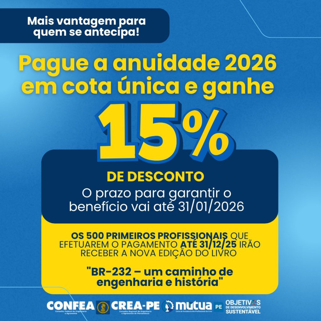 Pagamento antecipado garante desconto de 15% na anuidade 2026 Leia mais »
