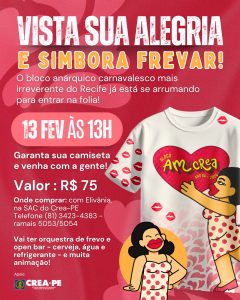 O bloco AmoCrea está se preparando para ganhar as ruas! Simbora com a gente se divertir ao som de uma orquestra de frevo e muita irreverência. Compre sua camisa por R$ 75 e garanta open bar de bebidas – cerveja, água e refrigerante. É só falar com Elivânia – (81) 3423.4383, ramais 5053 e 5054.