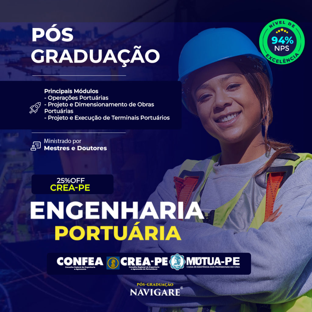 O Instituto Navigare realizará no formato online, a 3ª turma de Engenharia Portuária! A Pós terá no quadro de professores nomes reconhecidos nacionalmente, como NewtonNarciso – Phd em Engenharia Naval e Oceânica – USP; Paolo Alfredini – Autor do livro Engenharia Portuária; (Ed. Blucher) e Doutor em Engenharia Hidráulica – USP, entre outros grandes nomes …