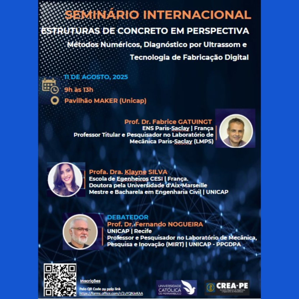 Evento reunirá na Unicap pesquisadores do Brasil e da França para discutir avanços Especialistas em pesquisa e engenharia se reunirão em um seminário no Recife para debater inovações tecnológicas no setor da construção. O Seminário Internacional Estruturas de Concreto em Perspectiva acontecerá no dia 11 de agosto, das 9h às 13h, no Pavilhão Maker da …