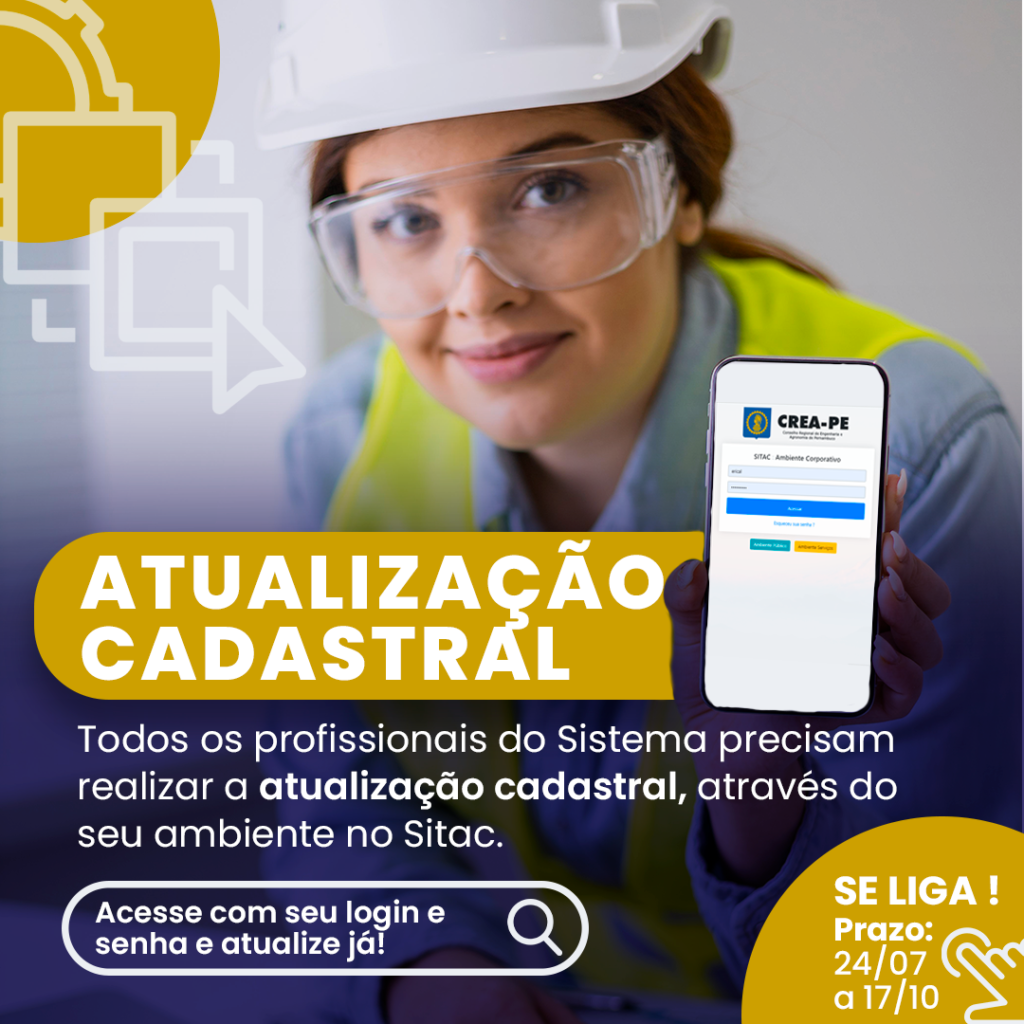 Profissionais registrados no Crea-PE devem realizar a atualização dos dados cadastrais no Sitac