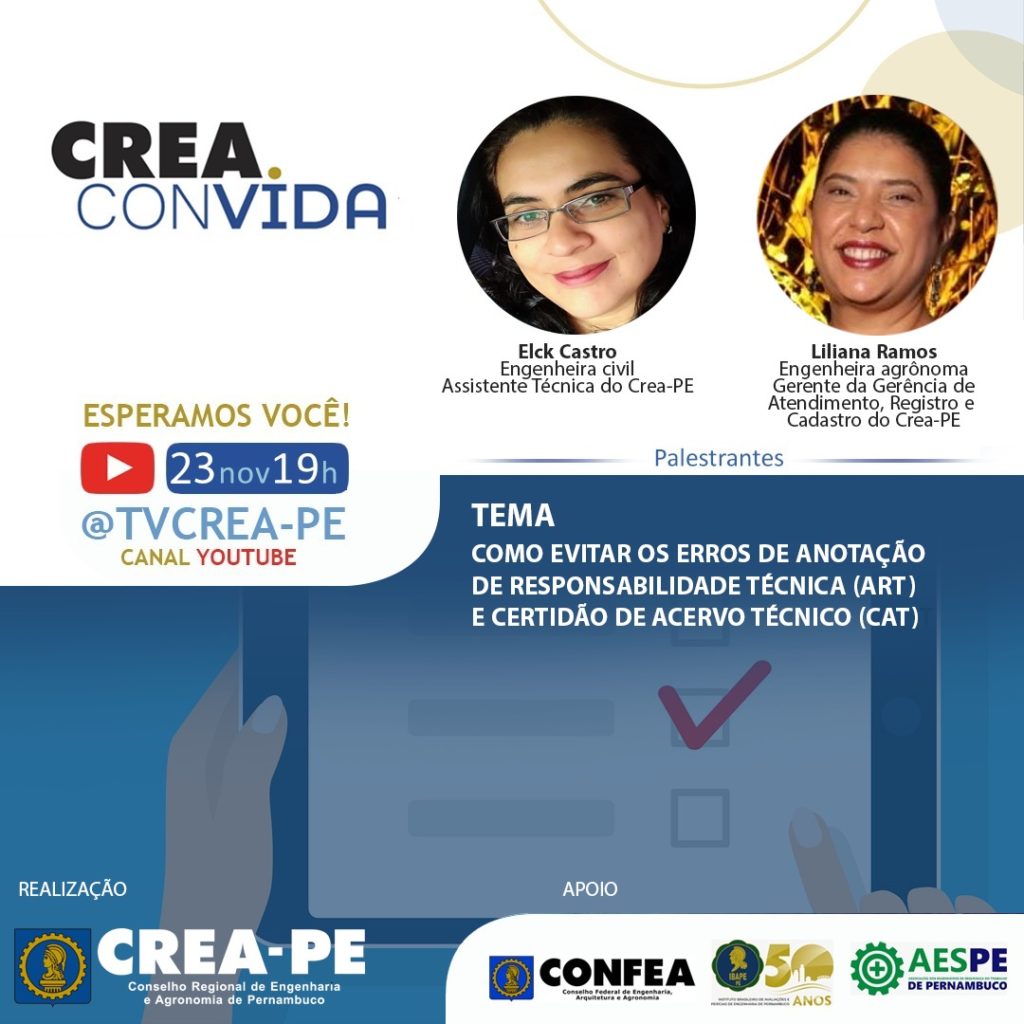 O Crea-PE, através do projeto Crea na Comunidade e em parceria com a Universidade de Pernambuco, divulgou nesta segunda-feira (22) a lista dos dez bolsistas selecionados para os projetos Crea na Comunidade e Habite Melhor – Assistência Técnica à Habitação. A oferta de bolsas para estudantes de Engenharia Civil é fruto do termo de cooperação …