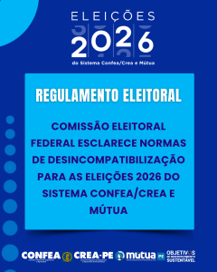 Em cumprimento à Deliberação nº 14/2026 da Comissão Eleitoral Federal, todos os candidatos às eleições gerais do Sistema Confea/Crea e Mútua de 2026, que ocupem cargo, emprego ou função pública ou exerçam mandato eletivo são obrigados a se desincompatibilizar para concorrer ao pleito.