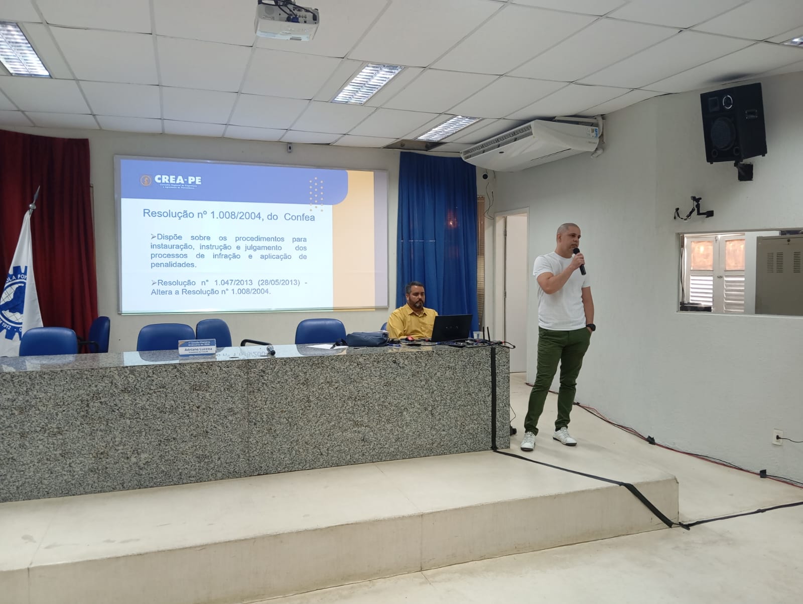 Em seguida, o analista técnico Arthur Vital apresentou os procedimentos relacionados a autos de infração, penalidades, julgamentos e à apresentação de defesas. Na sequência, a analista técnica Milena Dias falou sobre a análise e a instrução de processos envolvendo pessoas físicas e jurídicas, como profissionais, empresas, entidades de classe e instituições de ensino. Encerrando a programação, o analista técnico do Crea-PE Fábio Barros esclareceu os procedimentos relativos à Anotação de Responsabilidade Técnica (ART) e à Certidão de Acervo Técnico (CAT), instrumentos fundamentais para o exercício profissional.