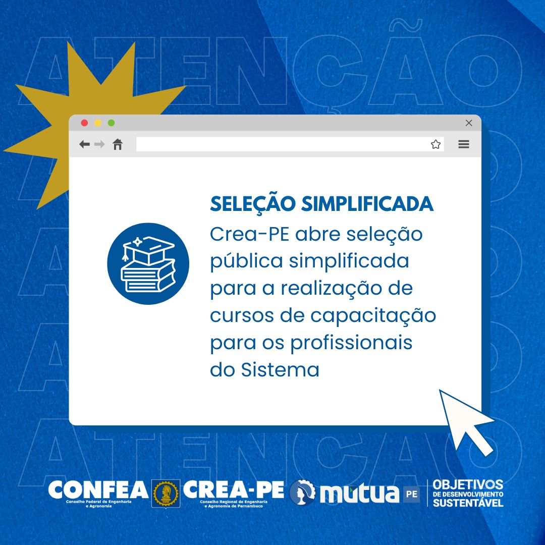 O Crea-PE publicou edital para chamada pública simplificada para a realização de cursos de capacitação para os profissionais do sistema Confea/Crea, compreendendo aulas presenciais, por meio do Programa Crea Qualifica.