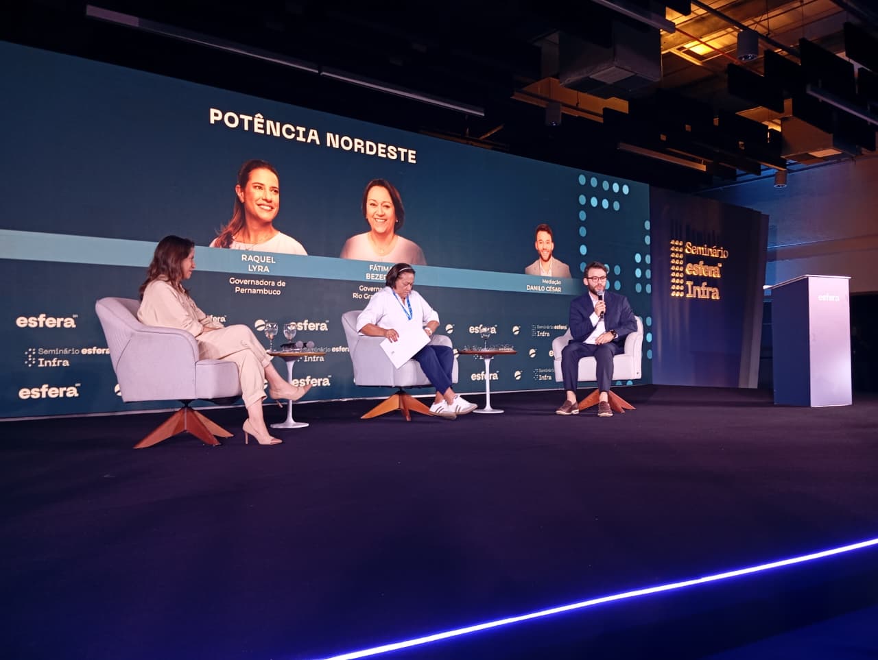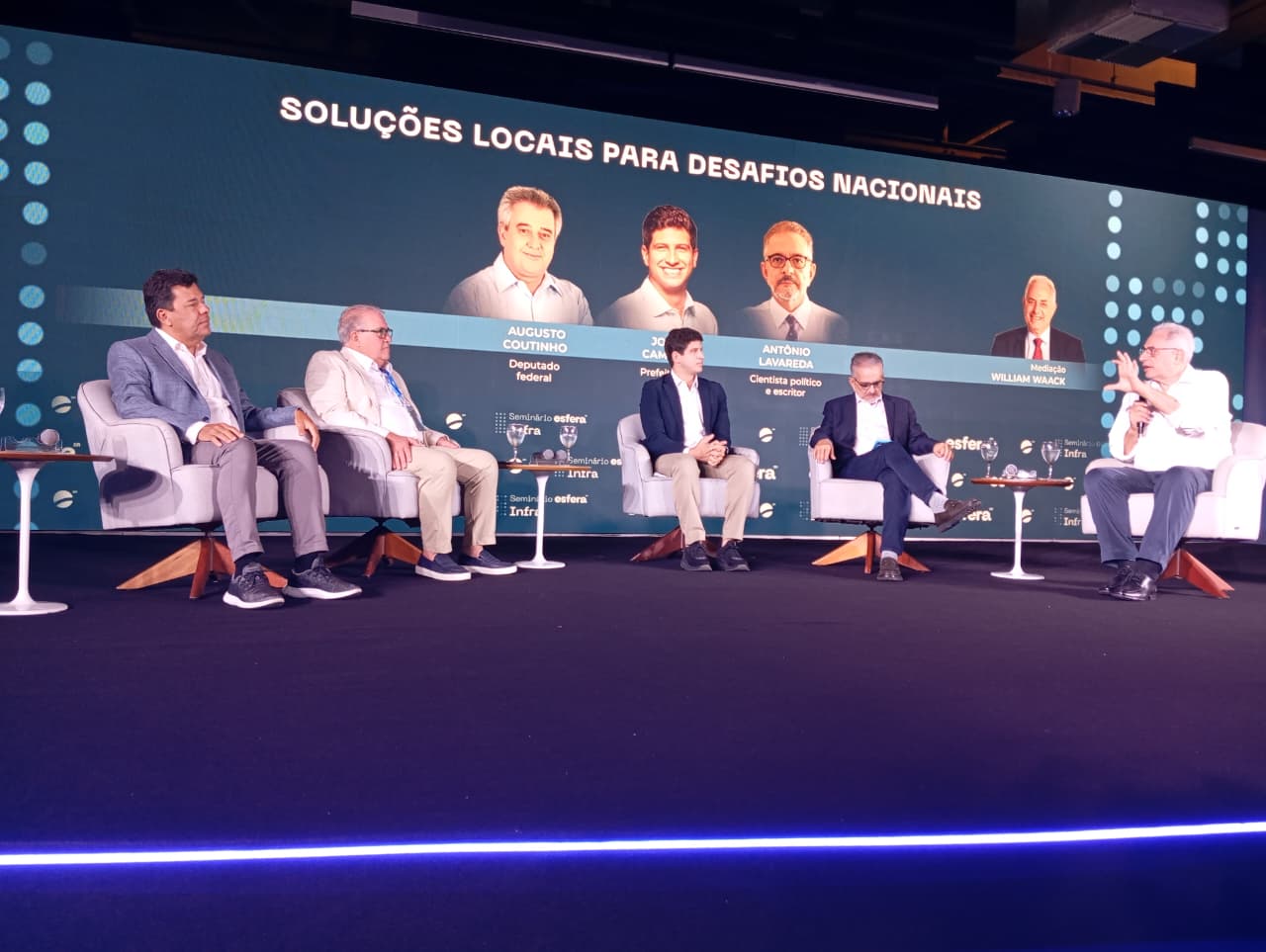 Os jornalistas William Waack e Danilo César se alternaram na mediação dos painéis do evento. O primeiro, intitulado “O Brasil em Construção”, contou com a participação dos ministros Alexandre Silveira (Minas e Energia), Sílvio Costa Filho (Portos e Aeroportos), Jader Filho (Cidades) e Vinícius de Carvalho (Controladoria-Geral da União). O segundo debateu o tema “Potência Nordeste”, com a presença das governadoras Raquel Lyra (Pernambuco) e Fátima Bezerra (Rio Grande do Norte). No terceiro painel, o prefeito do Recife, João Campos, o cientista político Antônio Lavareda e os deputados federais Augusto Coutinho e Mendonça Filho discutiram o tema “Soluções Locais para Desafios Nacionais”.