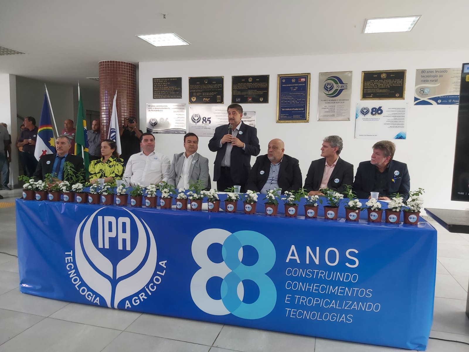 O Instituto Agronômico de Pernambuco (IPA) celebrou, nesta quarta (6), seus 88 anos de existência com uma cerimônia comemorativa realizada simultaneamente na sede e nas 12 Estações Experimentais e Gerências Regionais de Extensão Rural. O vice-presidente do Crea-PE, Pedro Paulo Fonseca, prestigiou a celebração junto com a diretora financeira do Conselho, Cecília Lira. A programação contou com homenagens aos profissionais da casa, discursos, celebração religiosa e corte do bolo.