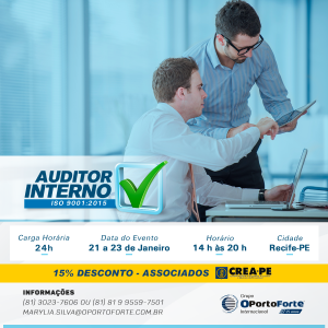 Público-alvo: Profissionais envolvidos no Sistema da Qualidade que deverão atuar como auditores internos na empresa e/ou em fornecedores; Profissionais que tenham interesse em aprender a auditar conforme as normas ISO 9001:2015 e NBRISO19011:2012.