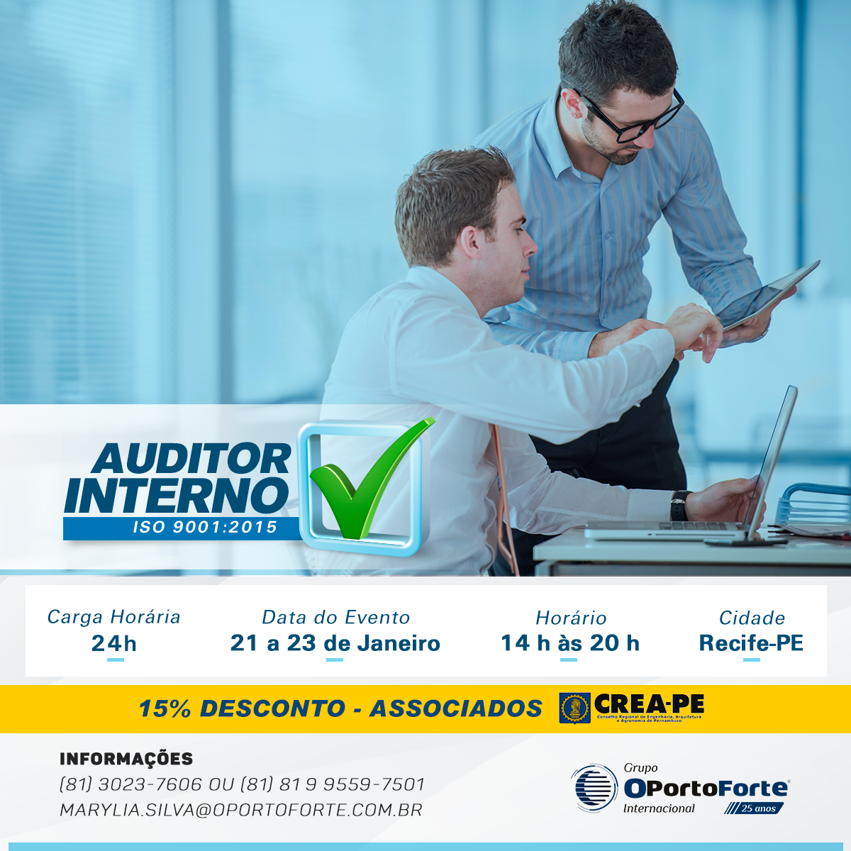 Informações e inscrições: (81) 3023.7606/ (81) 9559.7501 ou marylia.silva@oportoforte.com.br