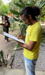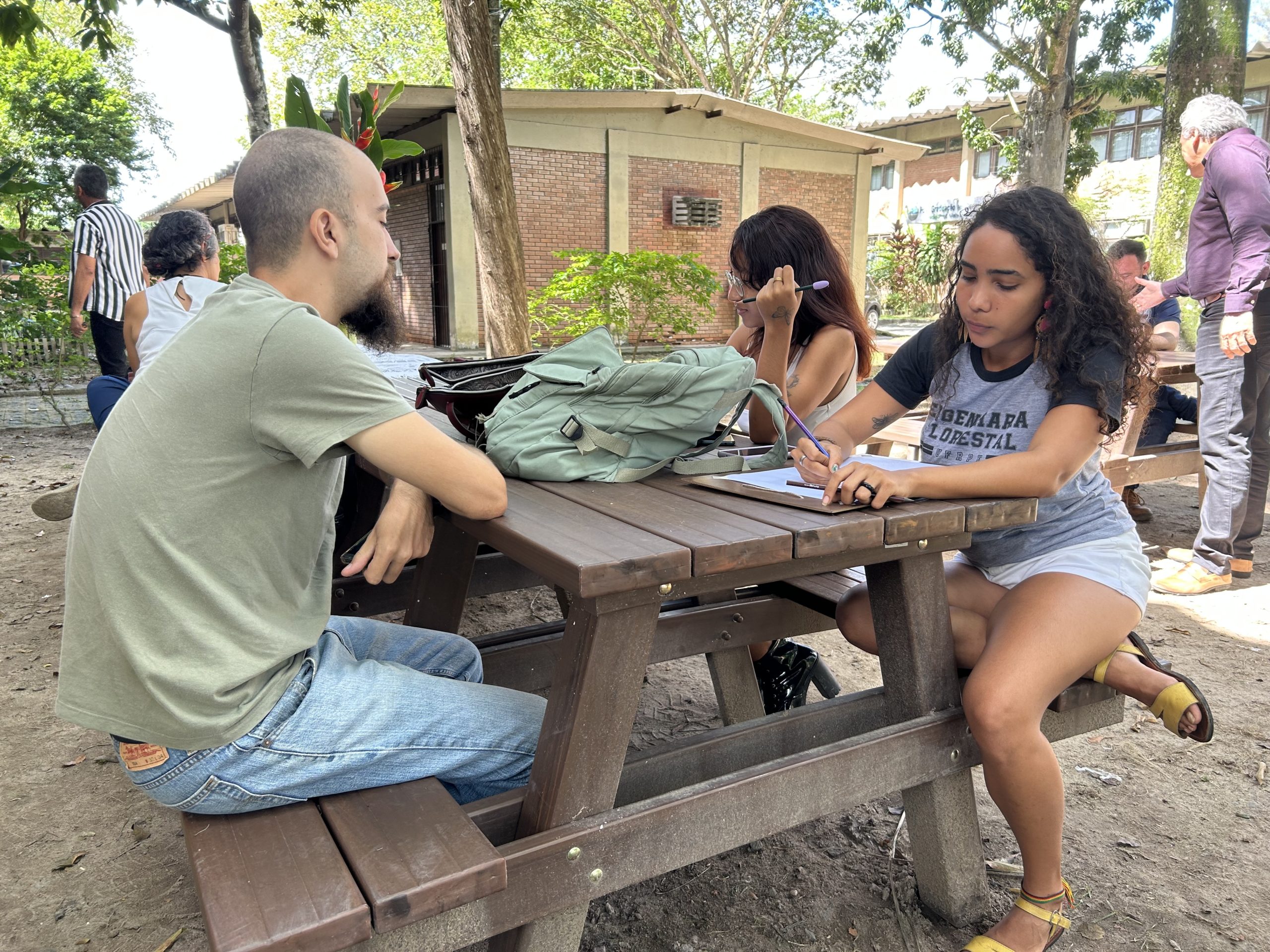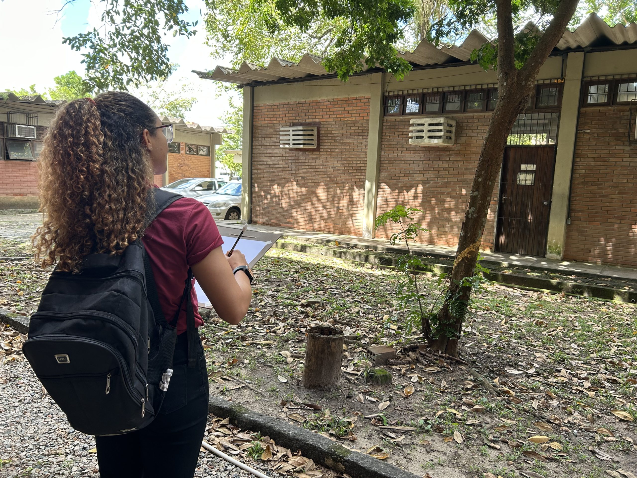 Para fechar a programação da manhã, os alunos participaram da oficina “Arquitetura das Árvores”, uma vivência que une a Engenharia Florestal com a arte do desenho, a partir da observação. Os estudantes foram convidados a produzirem desenhos destacando a casca, textura e outros aspectos das árvores localizadas no Departamento de Engenharia Florestal da UFRPE.