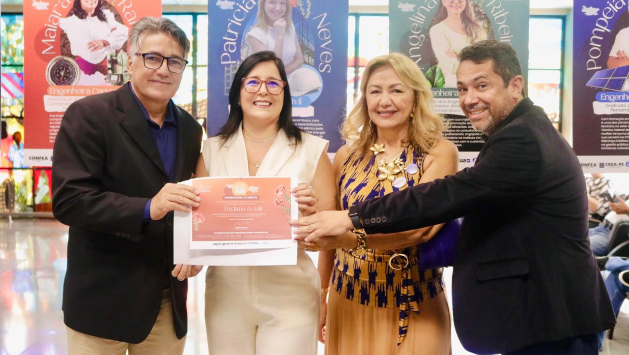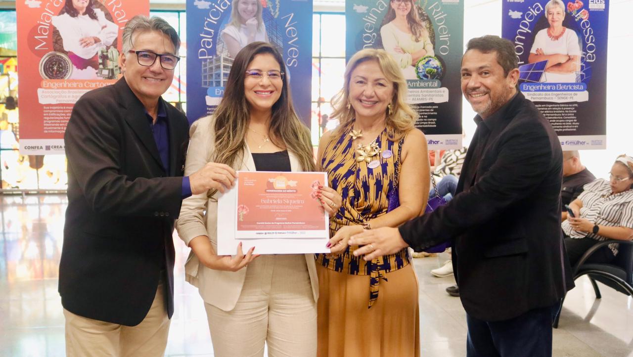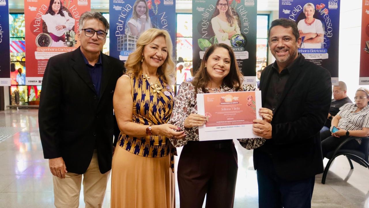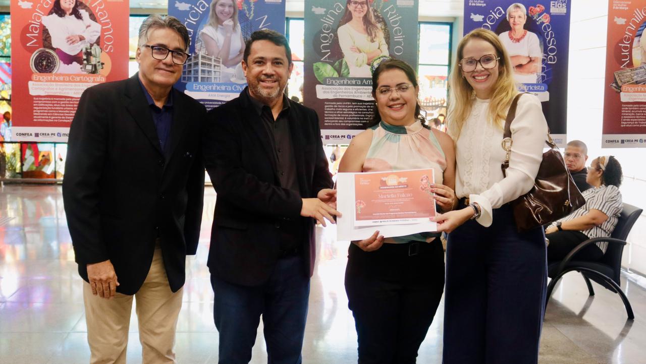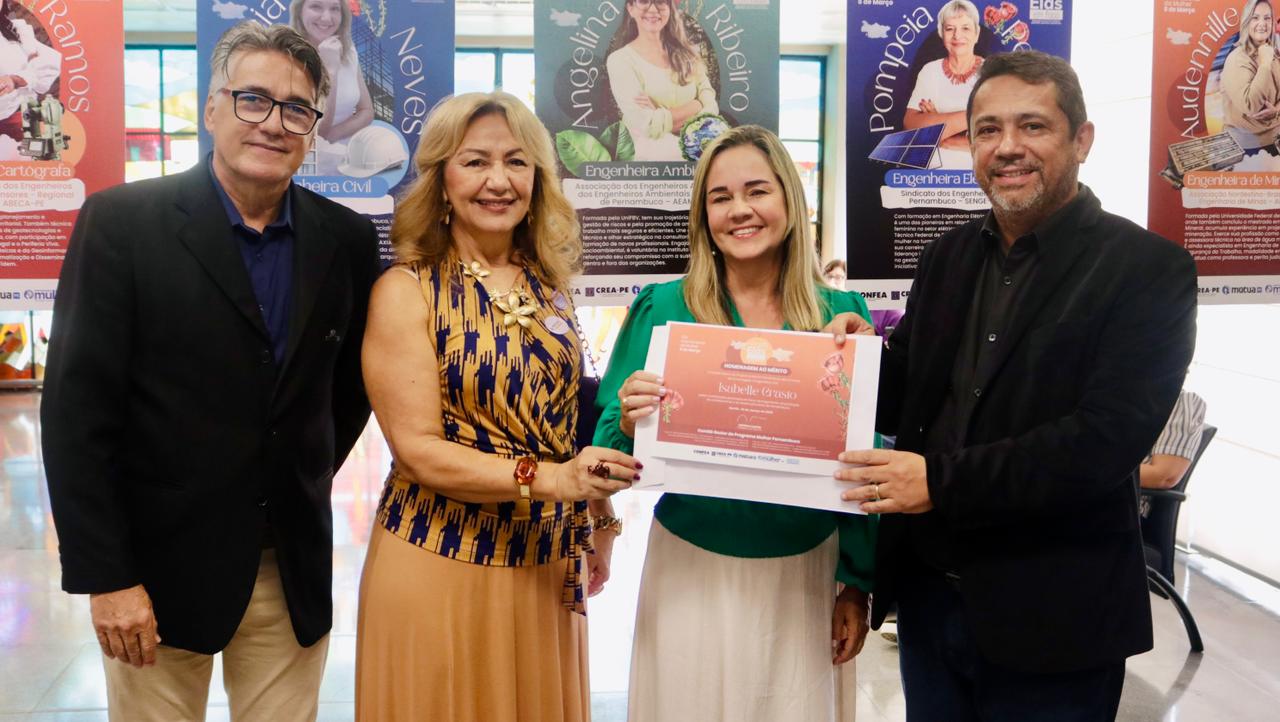 Já a engenheira civil Juliana Melo se sentiu grata por estar representando o IFPE. “Me sinto muito feliz por ter sido indicada pela instituição onde percorri toda a minha carreira acadêmica”, declarou.  As homenageadas foram indicadas por entidades de classe, instituições de ensino, empresas públicas e privadas, Crea-PE e Mútua-PE.