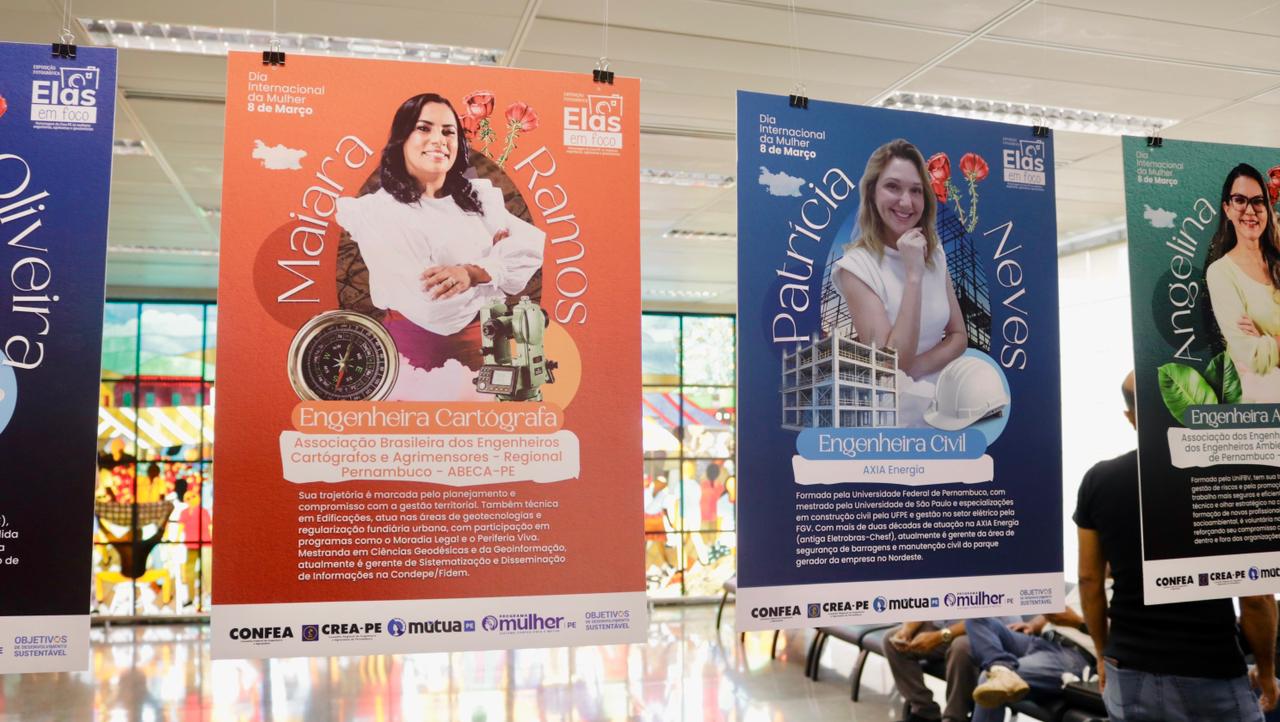 O Elas em Foco também dá voz às mulheres, em uma série de vídeos. É só acessar o Instagram do Crea-PE e conferir as falas das profissionais retratadas na exposição. Desta quarta até a próxima terça, as homenageadas refletem e opinam sobre carreira, questões de gênero, dificuldades e preconceitos. Também deixam seu recado para as jovens que vão integrar as próximas gerações de engenheiras, agrônomas e geocientistas.