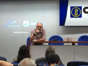 A palestra teve início com a palavra do engenheiro Amir, apresentando seus convidados, iniciando o debate sobre as principais diferenças no uso da argamassa de obra, chamada de argamassa comum, e a argamassa estabilizada, já muito utilizada nos dias atuais nas construções civis.