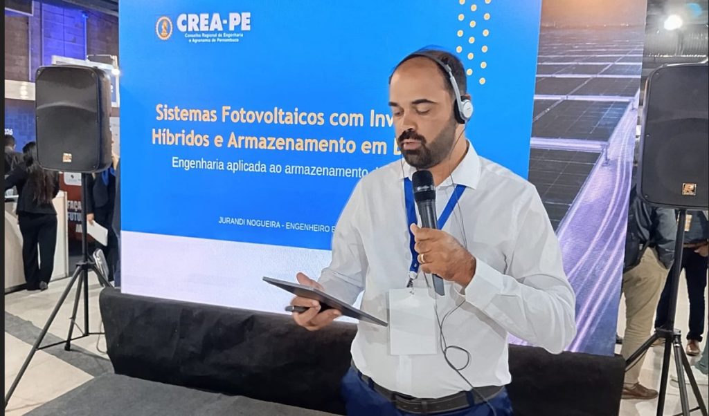 Além do painel, nesta quinta-feira, o Crea-PE também marcou presença no Palco Expo da feira. O engenheiro eletricista Jurandi Nogueira ministrou uma palestra sobre sistemas fotovoltaicos com inversores híbridos e armazenamento em baterias. A apresentação abordou as aplicações da engenharia no armazenamento de energia e soluções tecnológicas voltadas à eficiência energética.