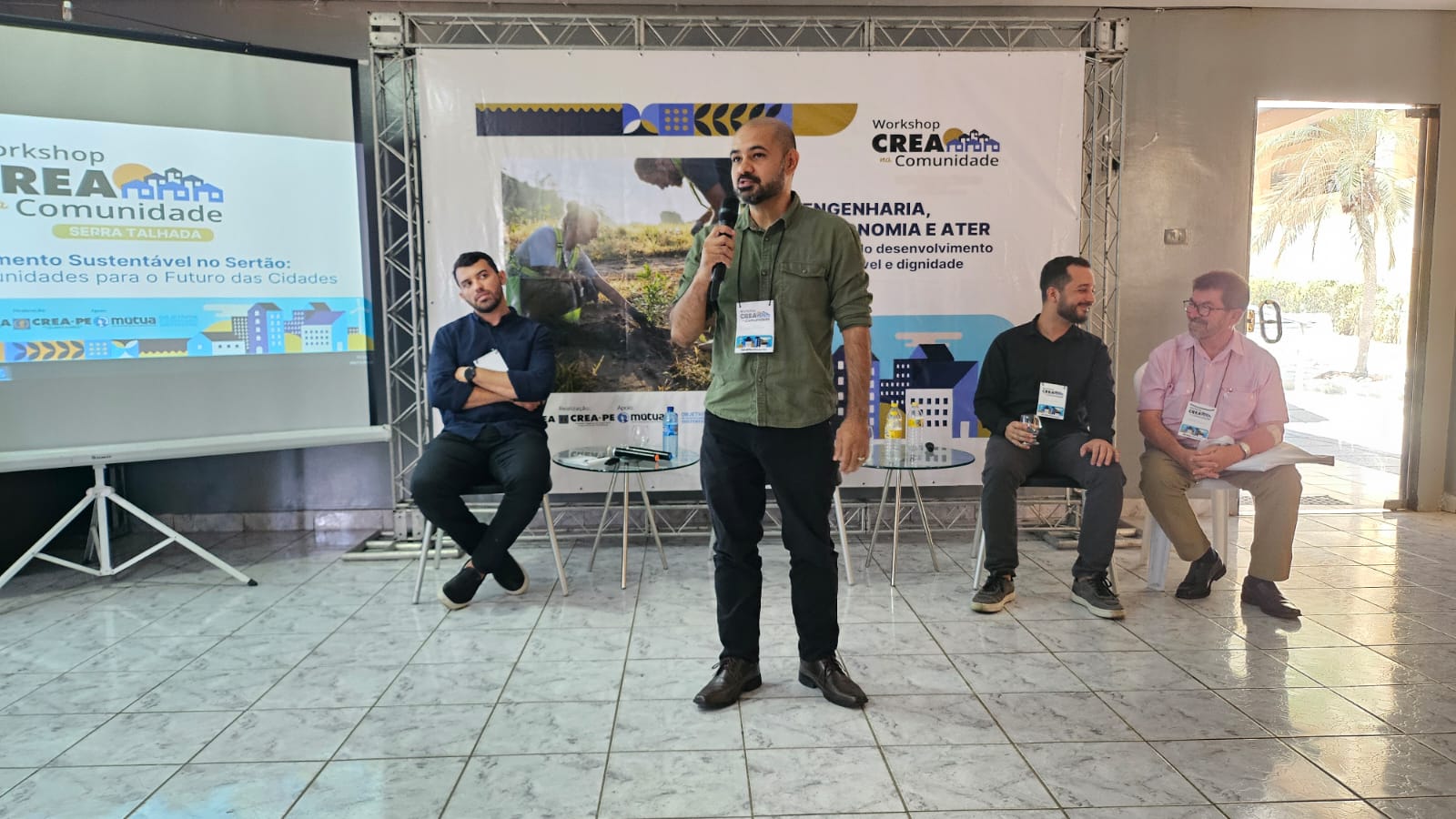 O presidente do Crea-PE, Adriano Lucena, fez a abertura do evento, convocando todos ao debate em prol da boa engenharia, com práticas de desenvolvimento sustentável para a região. Estavam presentes o diretor financeiro da Mútua-PE, Jurandir Liberal, e o inspetor tesoureiro de Serra Talhada, Genicélio Cordeiro.